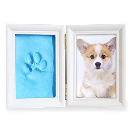 その7: (エスネット) ペット 赤ちゃん メモリアル フォト フレーム 写真 立て 幅 23cm 高さ 15cm 手形 足型 粘土 付き 木製 贈り物 猫 ブルー